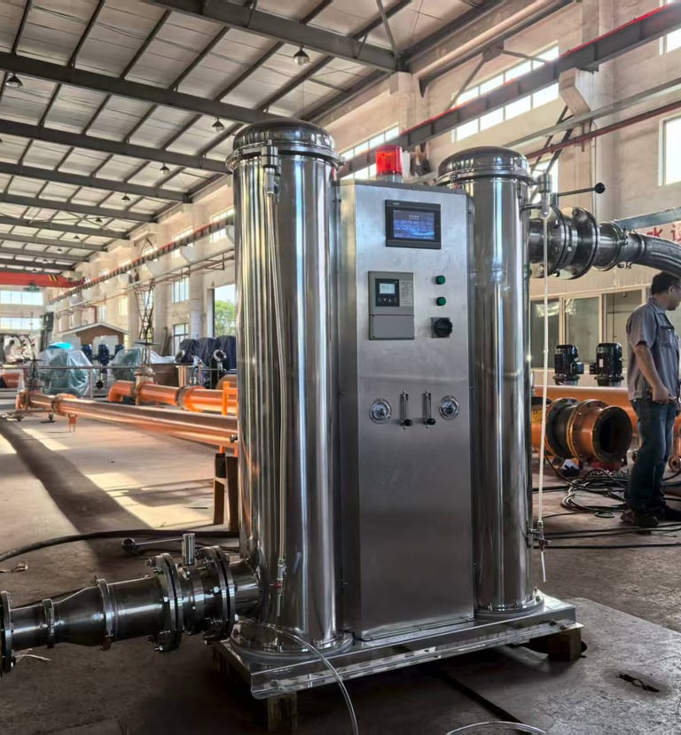 Skid style Nanobubble Generator with large flow rate (upto 1000 m3/hr) and can be used for large scale agriculture irrigation, aquaculture and wastewater treatment applications.